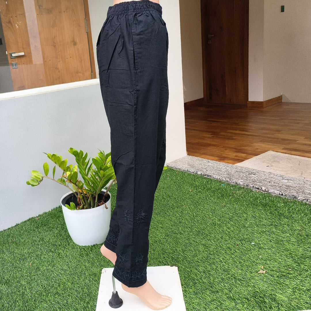 Women's Machine Chikan Cotton Trousers Black
